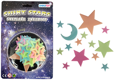 Set svetlečih zvezd ali lunic prilepite na steno, vrata ali strop. Ko se napolnijo s svetlobo, svetijo tudi v temi.
